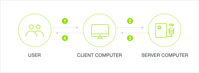 유저가 웹페이지에서 명령을 내리면, 클라이언트 컴퓨터가 서버 컴퓨터에게 명령에 대한 값을 요청합니다. 이때, 서버 컴퓨터는 데이터 베이스에서 데이터를 찾아 클라이언트 컴퓨터에 보내주고, 클라이언트 컴퓨터는 이를 전달받아 유저에게 보여줍니다. 여기서 중요한 부분은 홈페이지 운영을 위해, 자료가 저장되는 공간인 서버가 꼭 필요하다는 것 입니다.